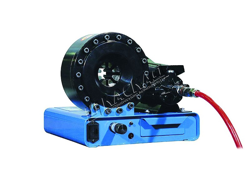 - Обжимной. Основу такой части оборудования составляет гидравлический привод и пресс. Он работает от масла. Нагнетает техническую жидкость компрессор 12B – 380B. Чем мощнее оборудование, тем у него выше производительность. Для мобильных ремонтных мастерских подойдет и оборудование, работающее от 24B. Для стационарных станков нужна защита от перегрузок.